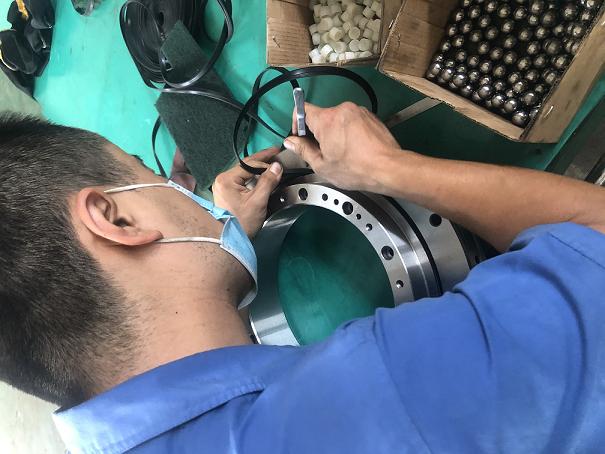生產(chǎn)一套精密YRT轉(zhuǎn)臺(tái)軸承,工序包括很多,其中,磨加工是關(guān)鍵決定的工序,對(duì)于成品精度影響非常大。